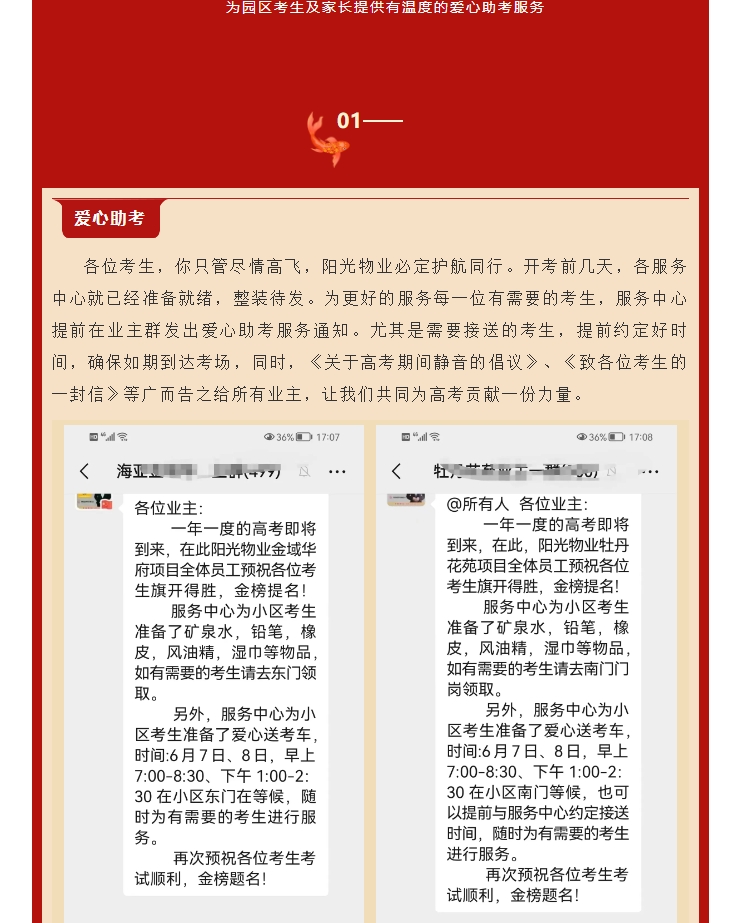 愛心助考|許你盡情高飛 陽(yáng)光物業(yè)護(hù)航同行