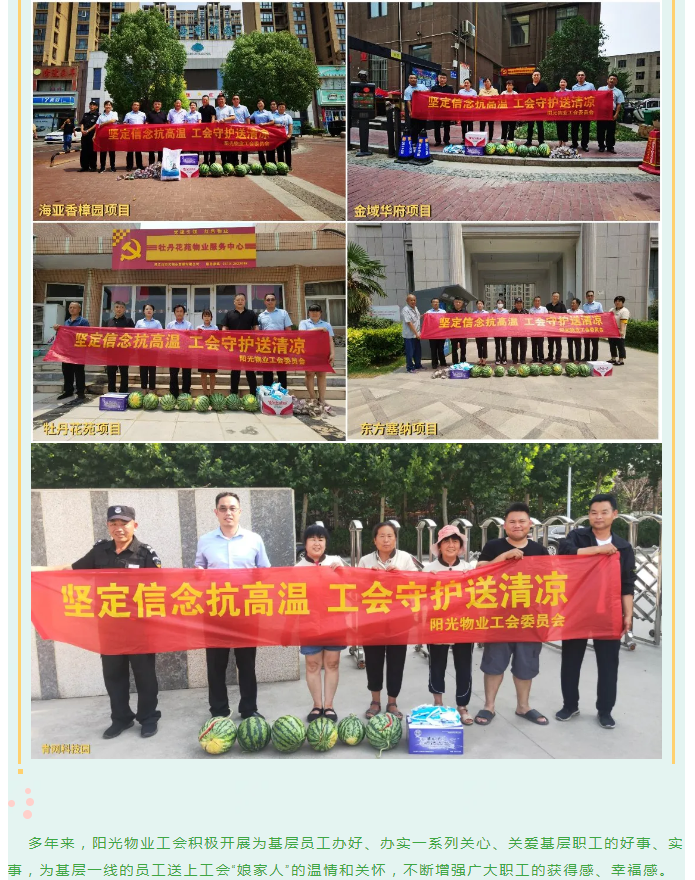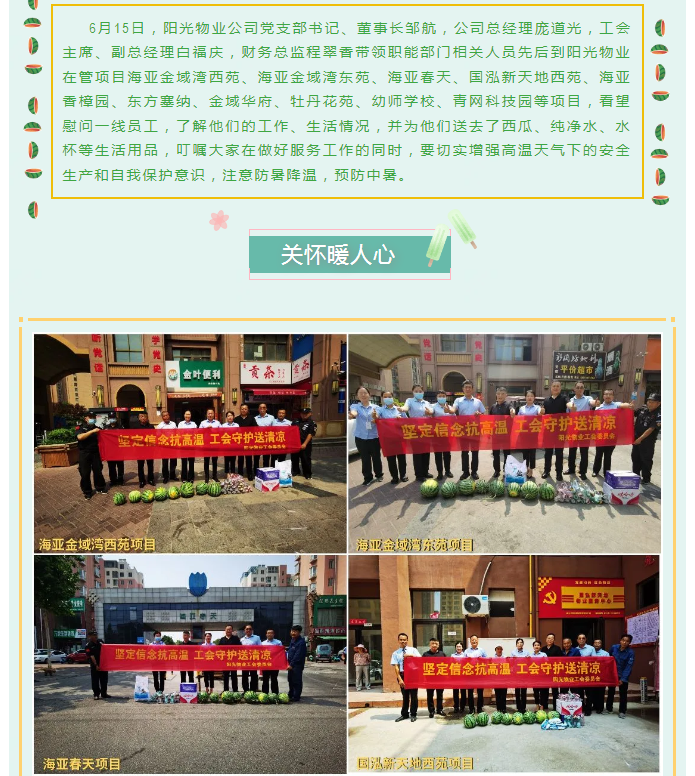 工會活動|陽光物業(yè)開展“堅定信念抗高溫、工會守護(hù)送清涼”活動