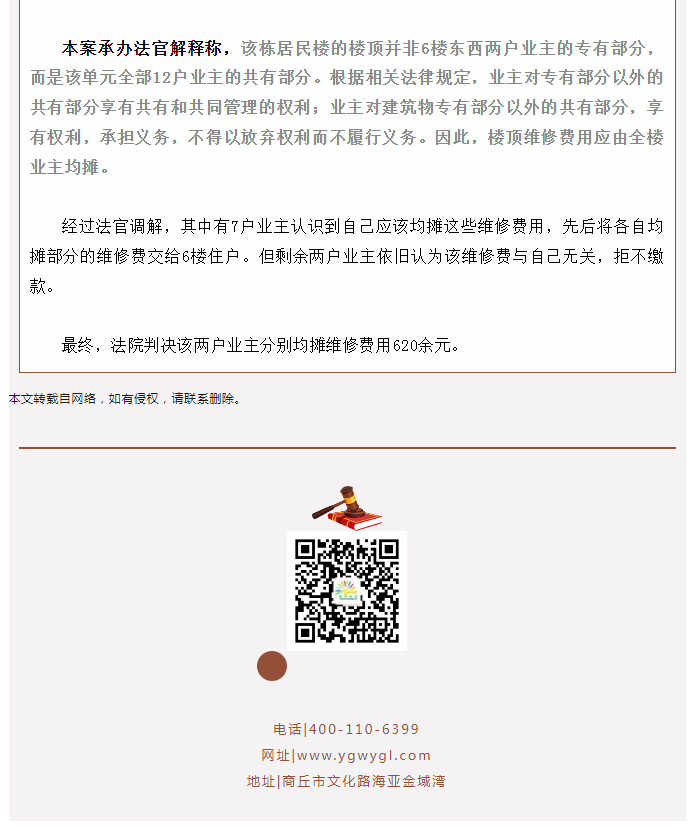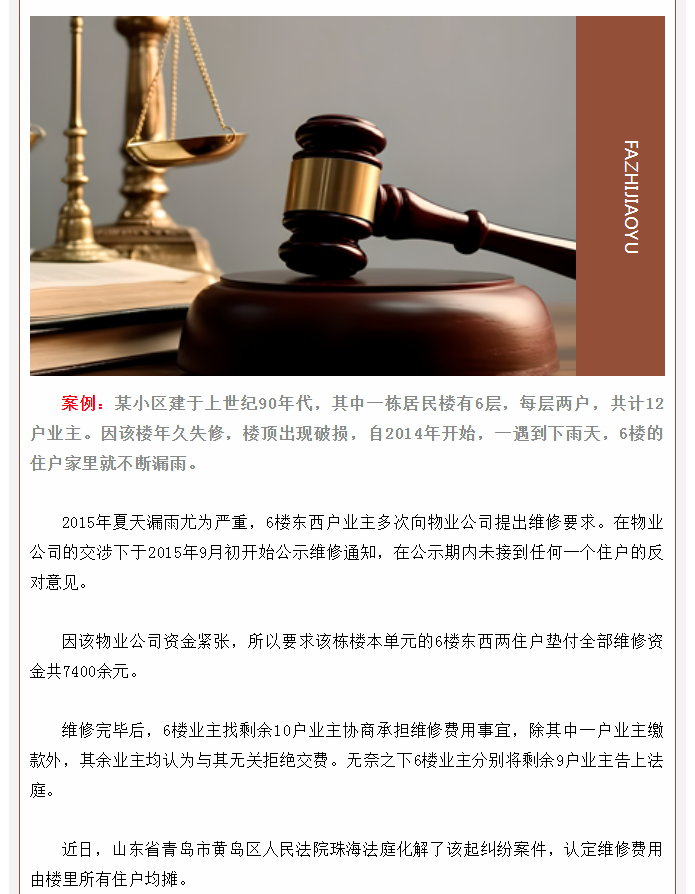 樓頂漏雨需維修,為什么全樓業(yè)主攤費(fèi)用?