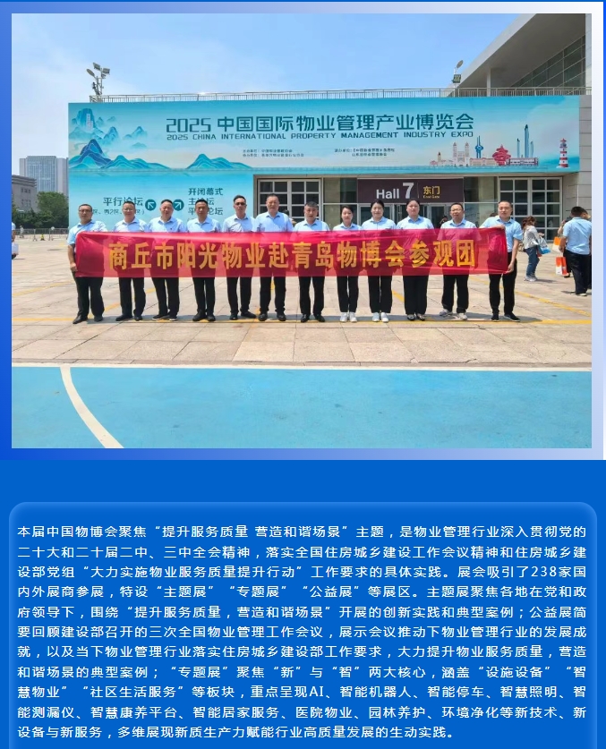 陽光物業(yè)成立于2003年5月,專注物業(yè)服務(wù)行業(yè)20余載,陽光物業(yè)現(xiàn)為河南省物業(yè)管理協(xié)會副會長單位、商丘市物業(yè)管理協(xié)會副會長單位,公司注冊資金1020萬元,陽光物業(yè)連續(xù)多年被河南省及商丘市評為先進企業(yè)、優(yōu)秀企業(yè)。